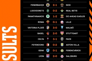 欧联杯第二轮战罢,罗马0-1不敌里尔,费内巴切2-1力克尼斯,维拉里昂成功获胜。