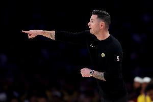 全文摘要:湖人主帅雷迪克透露球队训练严苛,今日以三组高强度折返跑收尾,并亲自参与。他笑称此举虽能提升球员体能,但可能让自己在更衣室“失宠”。