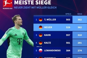 全文摘要:德转统计德甲球员胜场,诺伊尔以362胜追平穆勒,并列第一。卡恩以310胜位列第三,卡尔茨291胜第四,莱万274胜第五。胡梅尔斯、拉姆、马特乌斯等名将也悉数上榜,展现了他们在德甲赛场的辉煌成就。