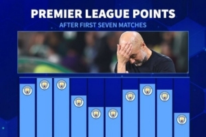 全文摘要:曼城英超前7轮仅取13分,创下瓜迪奥拉执教以来的同期最低积分纪录。这一成绩不仅低于其过往多个赛季的同期表现,也反映出球队本赛季开局遭遇挑战。