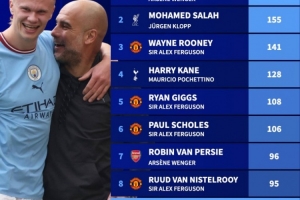 全文摘要:德国转会网站盘点单一主帅球员进球榜,亨利在温格麾下为阿森纳打入175球高居榜首。萨拉赫(155球)、鲁尼(141球)等名将紧随其后,榜单由英超球员包揽,彰显英超主帅与球员的长期成功合作。