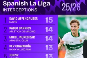 全文摘要:根据Squawka统计,西甲本赛季拦截次数排行出炉。埃尔切球员阿芬格鲁伯以15次居首。马竞的巴里奥斯与毕尔巴鄂的豪雷吉萨尔同以14次并列第二,皇马的琼阿梅尼则以12次并列第六。