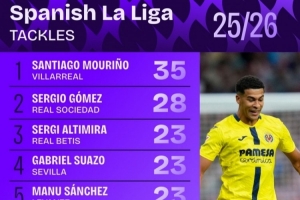 全文摘要:Squawka统计了本赛季西甲抢断榜,比利亚雷亚尔后卫S-穆里尼奥以35次抢断高居榜首。皇家社会球员塞尔吉奥-戈麦斯以28次位列第二,贝蒂斯的阿尔蒂米拉与塞维利亚的苏亚索同以23次抢断并列第三。