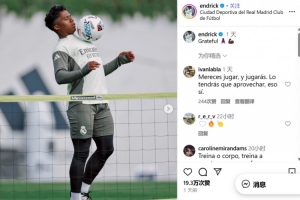 全文摘要:皇马前锋恩德里克虽未获出场机会,但他心态沉稳,专注训练,积极向主帅阿隆索证明自己。他在社交媒体晒出训练照,展现自信与感恩,耐心等待机会,准备随时为球队贡献力量。
