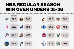 全文摘要:博彩公司BetMGM预测,雷霆新赛季常规赛胜场数最高,盘口指数达62.5,领跑全联盟。掘金、火箭、骑士等队紧随其后,而爵士、篮网等队则被看低。