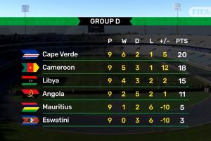 全文摘要:世预赛非洲区D组末轮,佛得角战平利比亚,2分领跑;喀麦隆2-0胜毛里求斯,暂居第二。佛得角末轮赢球即历史首进世界杯;喀麦隆凭净胜球优势保留晋级希望。小组第一直通世界杯,四支最佳小组二将参加附加赛。
