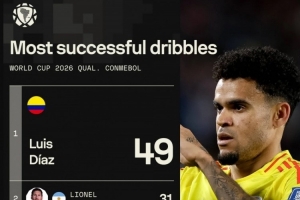 全文摘要:南美世预赛成功过人榜出炉。迪亚斯以49次成功过人高居榜首,梅西以31次位列第二。M-阿劳霍、索特尔多和拉蒙-索萨分列三到五位,次数分别为27次、26次和24次。