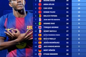 全文摘要:德国转会市场盘点2025年U21球员进球榜。巴萨天才亚马尔以39场32球高居榜首,巴黎圣日耳曼的杜埃以26球紧随其后。皇马的居莱尔位列第三,其余年轻球员的进球数据也一同揭晓。