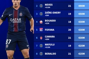 全文摘要:德国转会市场更新法甲U21球员身价,杜埃与若昂-内维斯以9000万欧并列榜首。前十名中,巴黎圣日耳曼独占五席,扎伊尔-埃梅里以5000万欧排名第三,展现其青训实力。