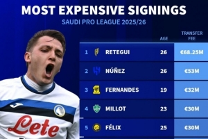 全文摘要:沙特今夏转会窗关闭,引援榜出炉。雷特吉以6825万欧元居首,努涅斯、罗杰-费尔南德斯等紧随其后。榜单亮点在于引援年轻化,前五名中五人年龄不超23岁,沙特联赛正通过引援注入新鲜血液。