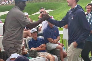 书豪打手打到老詹手腕:那肌肉太强壮了,感觉像打在一块大石头上。