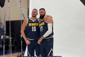 这内线组合能排前几啊?掘金媒体日 约基奇和瓦蓝一起拍定妆照~