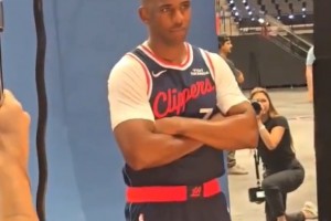 快船媒体日 保罗拍定妆照!炮哥一开始看着好严肃哈~