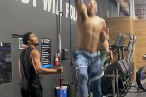 书豪打手打到老詹手腕:那肌肉太强壮了,感觉像打在一块大石头上。
