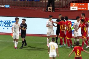 1、引发不满!铜梁龙球员把对方撞伤后摊手表示无辜,裁判挡在中间